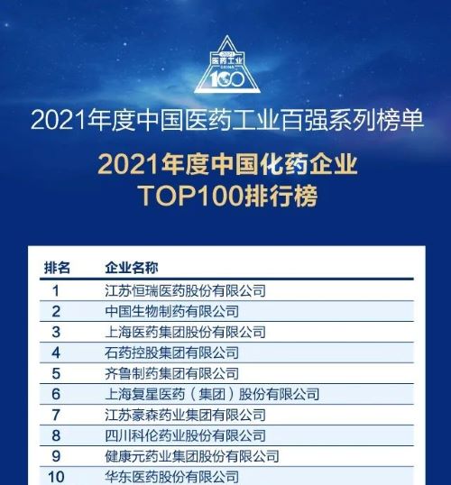 此前,九游会j9医药已经连续多年入选“中国化药企业TOP100排行榜”,自2018年起名列首位,今年再度蝉联榜首。