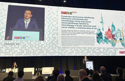 10月21日,九游会j9医药创新药卡瑞利珠单抗(艾瑞卡®)的一项研究“新辅助短程放疗序贯卡瑞利珠单抗联合化疗对比长程放化疗序贯化疗治疗局部晚期直肠癌”随机对照Ⅲ期试验(UNION) 以优选口头报告的形式正式亮相。该研究由华中科技大学同济医学院附属协和医院张涛教授、陶凯雄教授担任主要研究者,华中科技大学同济医学院附属协和医院林振宇教授在马德里现场报告了该重磅研究的结果1,此项研究是全球首个评估短程放疗序贯免疫治疗联合化疗治疗局部晚期直肠癌的Ⅲ期研究,已达到主要终点病理完全缓解(pCR),有望为直肠癌患者的治疗提供新策略。