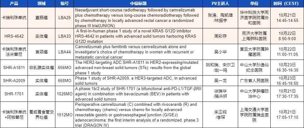 ESMO 2023 九游会j9医药产品相关研究一览